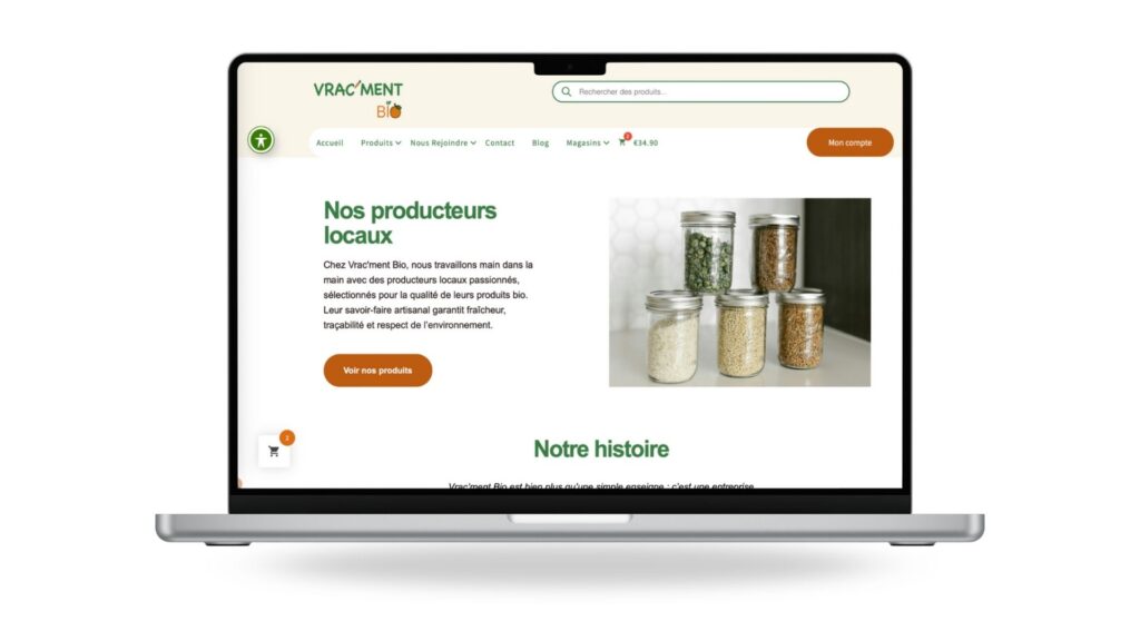 Nous avons travaillés pour le site web un site e-commerce avec une possibilité de click and collect ainsi qu’une partie recrutement en ligne.